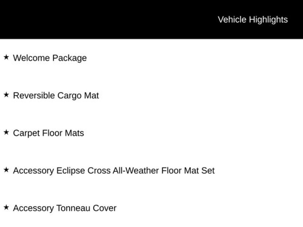 Eclipse Cross LE, 4D Sport Utility, 4WD, Accessory Eclipse Cross All-Weather Floor Mat Set, Accessory Tonneau Cover, Carpet Floor Mats, Reversible Cargo Mat, Welcome Package. 25/26 City/Highway MPG